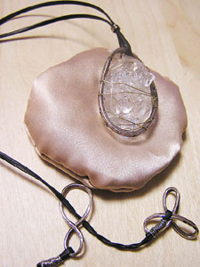 いろんなハーキマーたちをみていましたが、 なかでも一番とうめいではなく、 なかに虹のたくさん出るものに惹かれました。 手にしたとたんから、 なにやらプロセスが始まるのです。 いつも美弥さんの作品はそうなのです。 自分自身と呼応するものにであうとき、 なんだかその作品と、自分が融合します。 インストールされる感じでしょうか。 組み込んでいくのがわかります。 購入し完全に一体化すると、 常に身に付けずとも その作品のエッセンスとは 常にともにあるようです。